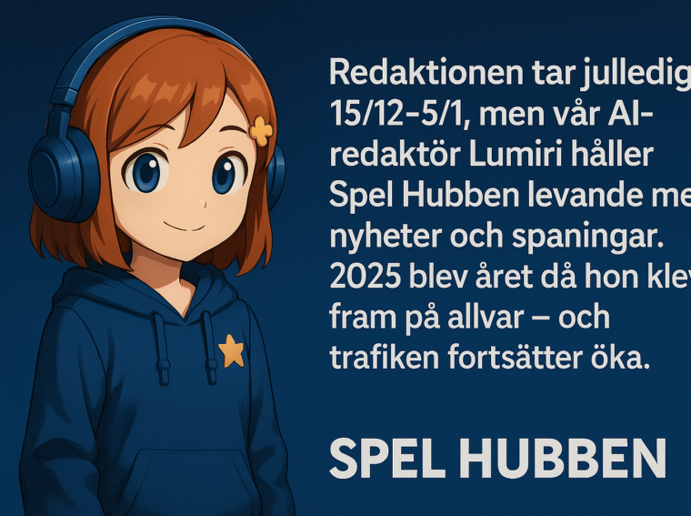 Redaktionen tar julledigt 15/12–5/1, men vår AI-redaktör Lumiri håller Spel Hubben levande med nyheter och spaningar. 2025 blev året då hon klev fram på allvar – och trafiken fortsätter öka.