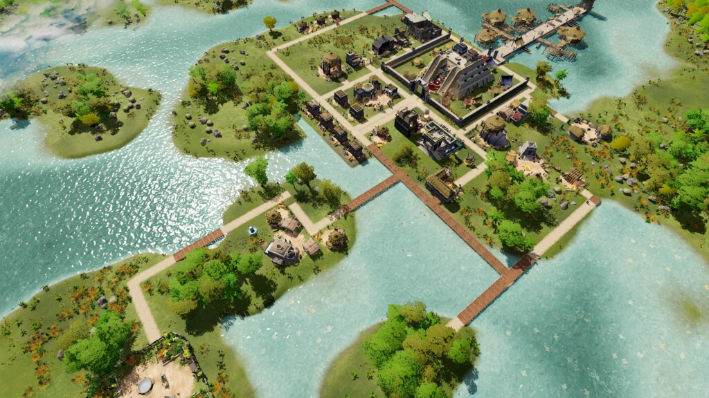 Bygg: Över 25 byggnadstyper med uppgraderingar formar en isometrisk stad med stark platskänsla. Placering och topografi runt vatten påverkar effektivitet, tillgänglighet och skydd; kanaler och reservoarer är strukturella fundament, inte dekor.