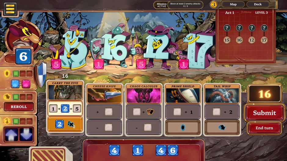 När fienderna är siffror och du måste matcha exakt, blir flexibilitet (olika operatorer, variabler, modifierare) sannolikt viktigare än ”större siffror”. Det kan driva intressanta val: ta ett kort som är sämre nu men öppnar fler exakta träffar senare.
